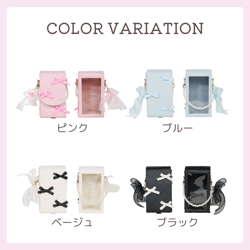 2WAYりぼんキルトレザー調デコぬいポーチ パールチャーム