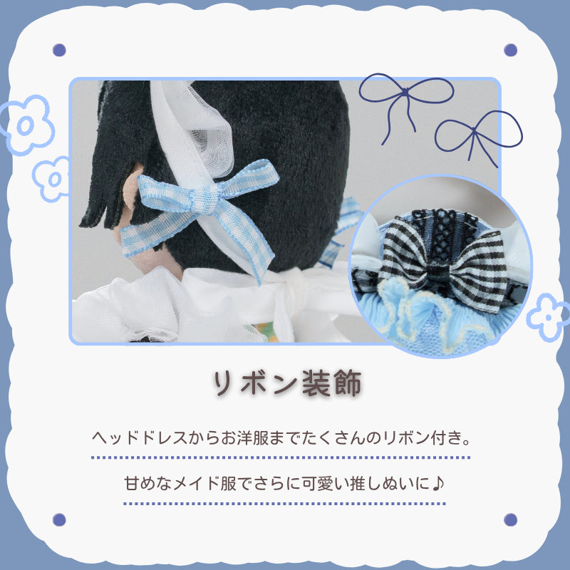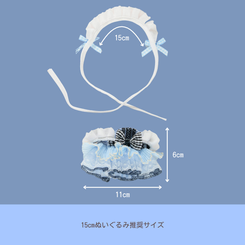 15cmぬいにぴったりの水色メイド服セット💙清楚でガーリーな雰囲気を引き立てる、ふんわりレースとたっぷりリボンのデザインが魅力✨お揃いのヘッドドレスも付いて、ぬい撮りやカフェ風シーンに映える仕上がりです☕推しぬいをとびきり可愛くおめかししちゃおう💐