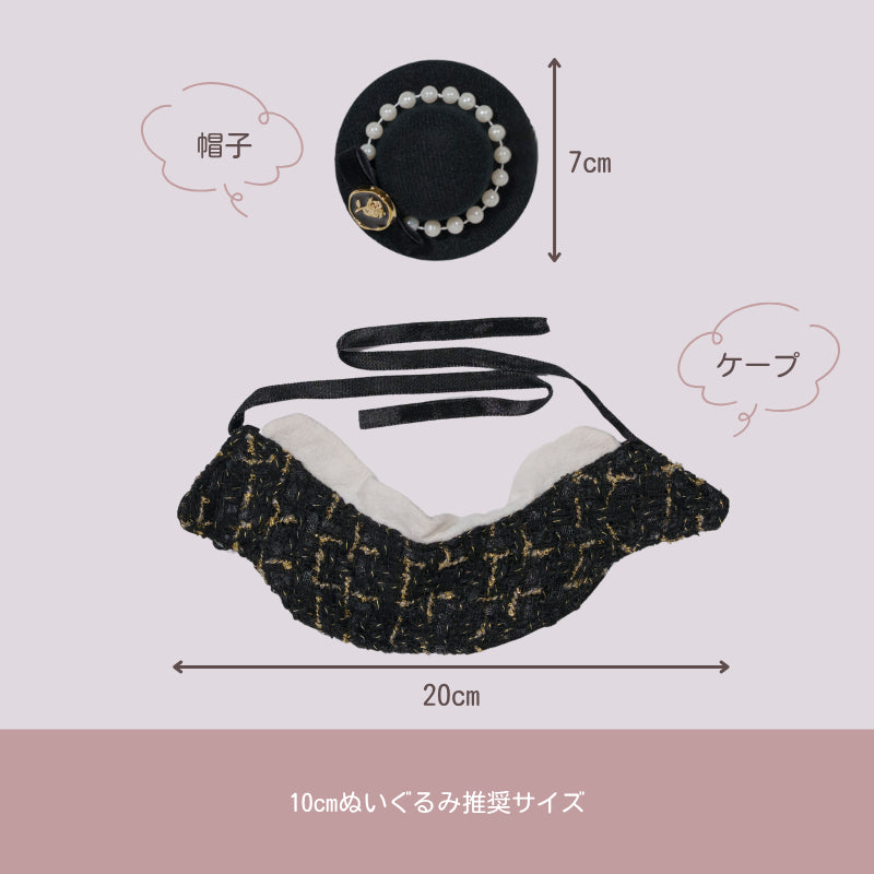 10cmぬいにぴったりのゴシックスタイル衣装🎩上品なブラックの帽子とケープの2点セットです。帽子にはゴム付きでズレにくく、おでかけ撮影も安心◎推しぬいをおしゃれにドレスアップして、特別な1枚を✨