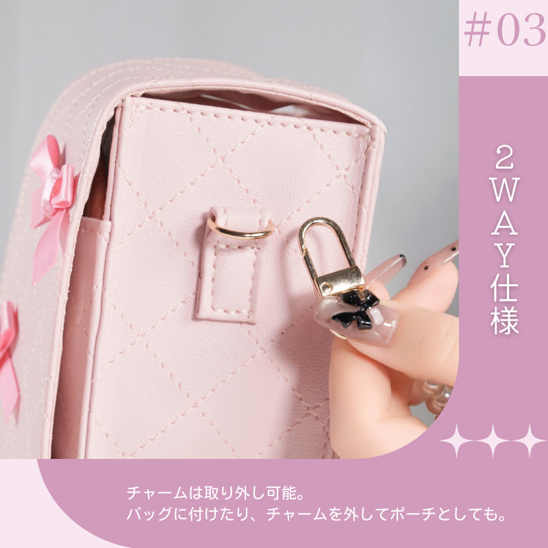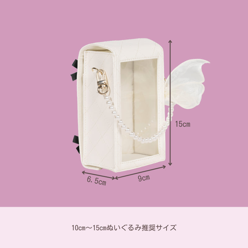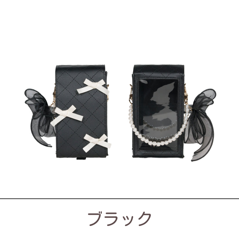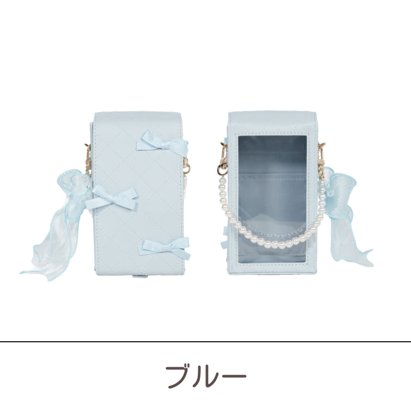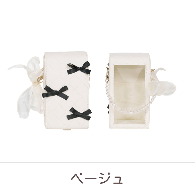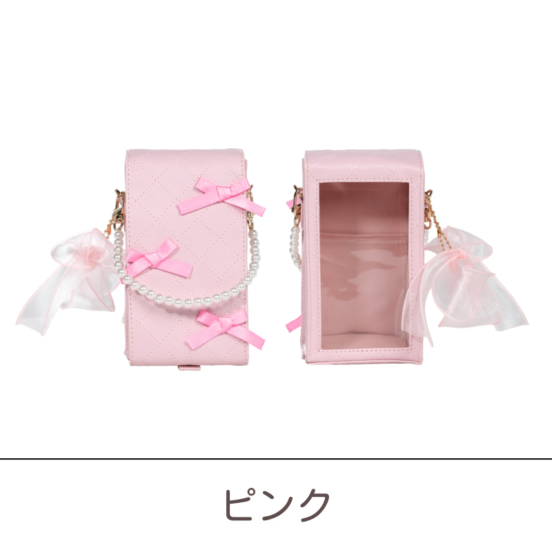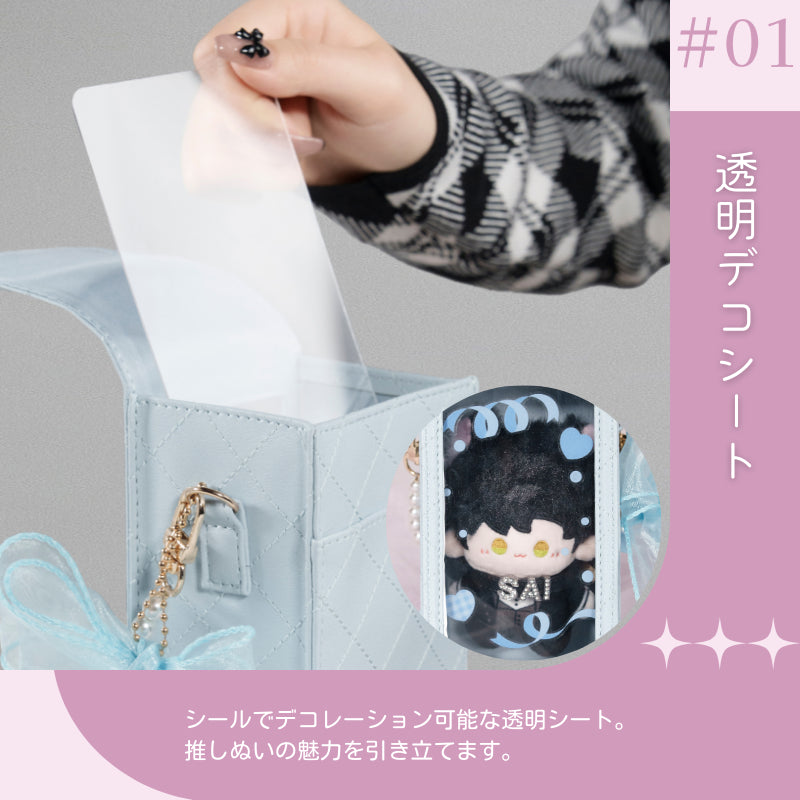 推しぬいと一緒にお出かけしたくなる✨キルトレザー調のデコぬいポーチが登場💐オーガンジーリボンとパールのチャームが上品かわいいアクセント🩰透明シートにはシールを貼って自分好みにデコOK✨チャームを外せば単体ポーチにもなる2WAY仕様!ぬい撮りにも現地推し活にもぴったり💞ピンク・ブルー・ベージュ・ブラックの4色展開で、推しカラーコーデにも合わせやすい🌈